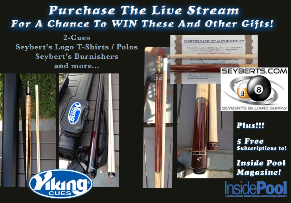 Viewers of the live stream will be eligible to WIN any one of 2 cues and other merchandise worth over $750!