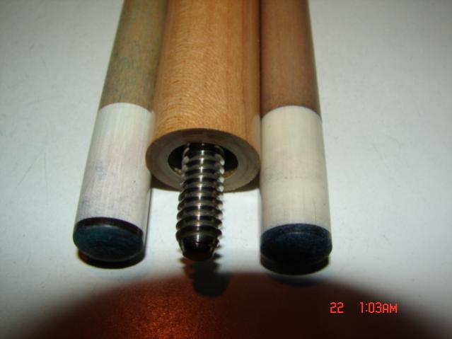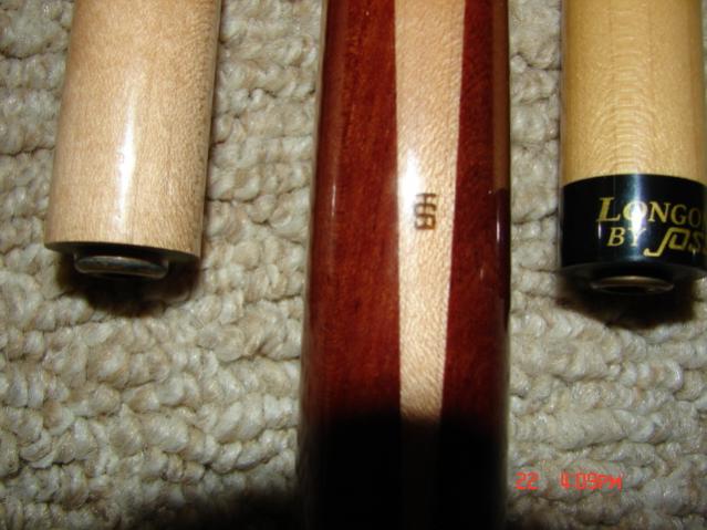 Nice cue in excellent condition, with one original shaft 12.85mm, one extra "Longoni by Joss" shaft 12.63mm, both straight.Both tips have lots of play left. The butt section is straight, with one TINY 1/4" very minor dent above the points and a few normal bumper area dings. Weight is 19.3/19.6 +/- oz.