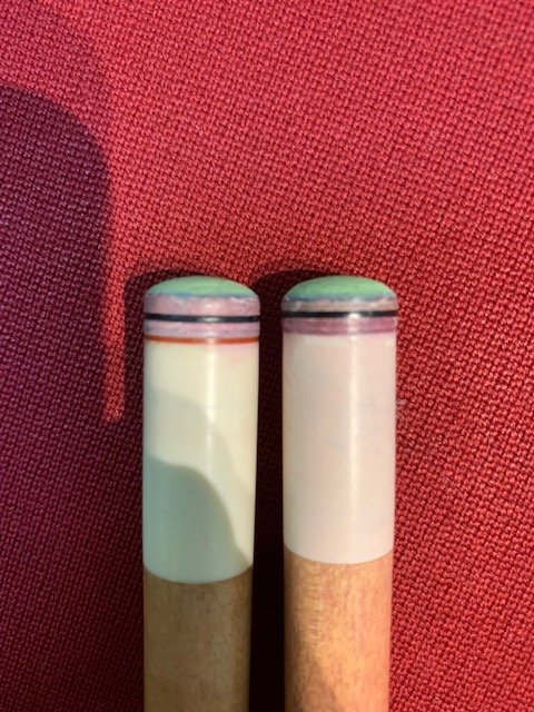 The older cue (right) is slightly narrower. 12.7mm vs 13.2.