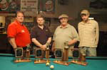 I've been trying to think of something profound to say since this sad incident has occured, but I can't exactly put it into words. I can say that not only the pool community, but the entire community as a whole lost a great person in Tom Ferry. He was a great ambassador to our sport, and the pool community will never be the same without him. I can say he seemed to be at peace, as I sat down and talked with him at the Midwest 9-Ball Tournament last month at the Break. He said he was right with the Lord, and he was ready whenever it was his time. He also highly complemented Lars Vardaman, Justin Bergman, and myself for dedicating ourselves to the game, and excelling at it, but even more for keeping our priorities straight. I was flattered by his complement. Attached below is a picture of Terry Hile, myself, Tom, and Boone Wagner from when Tom beat me to win the Missouri State 9-Ball Championship in 2005, and also a pic of Tom keeping me racking in the finals. At the time, I was mad at myself for not winning the tournament, but looking back, there is nobody else I would rather have lost to in the finals. He was as happy as I ever saw him.