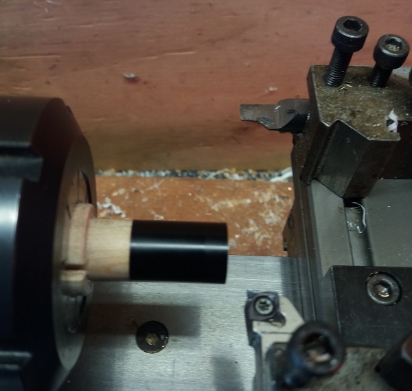 First impression was a little mixed, the colour of material is very gray, not black like Juma rods are even before taking a cut. I was sure that it would clean up nice when turned and polished and so it does. It cuts pretty much exactly like the white Tomahawk does, no surprise there. The interesting part working with the black version is making it shine. It takes a bit of patience to get all the tool marks out and a polishing compound is a must have if you want a glass like finish. I used Mirka Polarshine for final polishing as it is the best finishing compound that I have come across for ferrule jobs. I found this material a little tougher to polish than for example black Juma is. It takes a while to get all the little scrathes polish off. Its not necessary to make a ferrule look like a mirror but I wanted to try how well I am able to make it shine. Later on this post is a close up picture of the finished ferrule with a red pad and a pressed Elkmaster installed. Thats how I was able to make it look, there are still tiny imperfections but those are invisible unless looked up on under bright lights and up close.