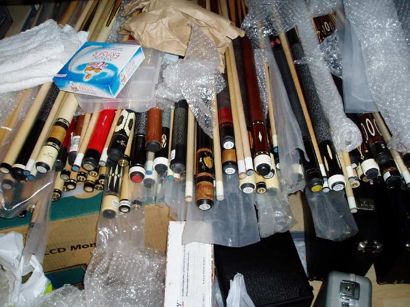 OK guys. I am literally out of places to put cues. I have 160 cues and a bunch of cases that have to go. The cues range from $40 sneakies up to $450 customs. The cases are mostly cheaper 1x1 and 1x2 cases, box cases and soft cases, Giuseppe and Porper and knockoffs that came with cues purchased. I don’t really know how to start selling these. I have some pics of some but not good ones. I will post examples and see where it goes from there. If you see anything you like, let me know and we'll deal.