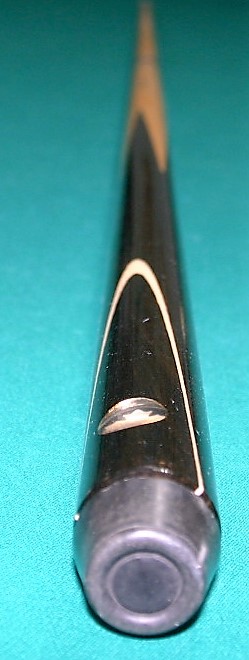 Selling a 2 piece Dufferin Silver Leaf Butterfly Cue. This cue is in great condition except for a small chip at the edge of the butt, should be easy fix. I didn't notice any other chips, just a few minuscule dings. Really have to be looking for them. The finish is in fantastic condition for its age. The maple is birds eye, the cue has a butterfly and is of Ebony. Rolls straight. I live in So. Calif.