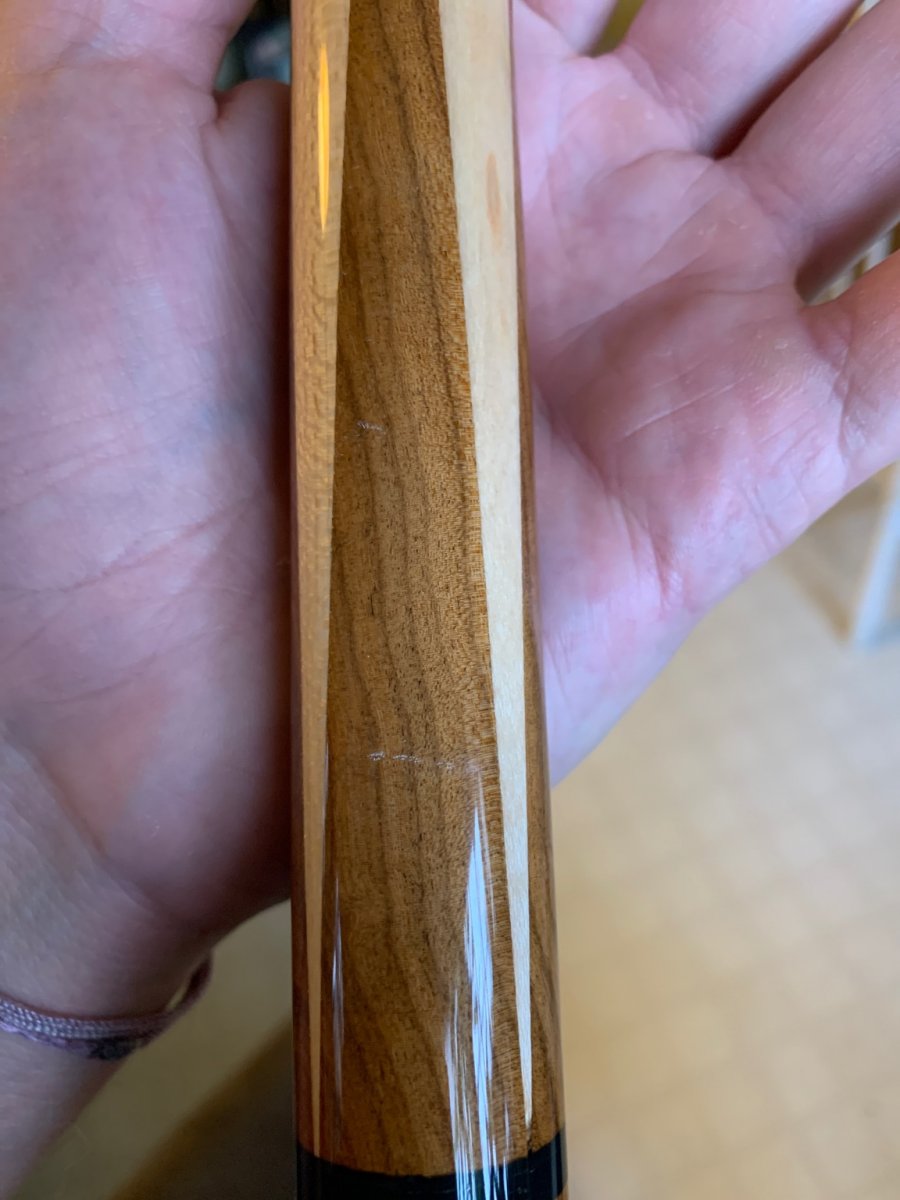 Hi everyone, I just finished my second cue build and I ended up trying to finish the cue 3 times. Epoxy base- sanded round then 10-15 coats of superglue, sanding (320 grit)