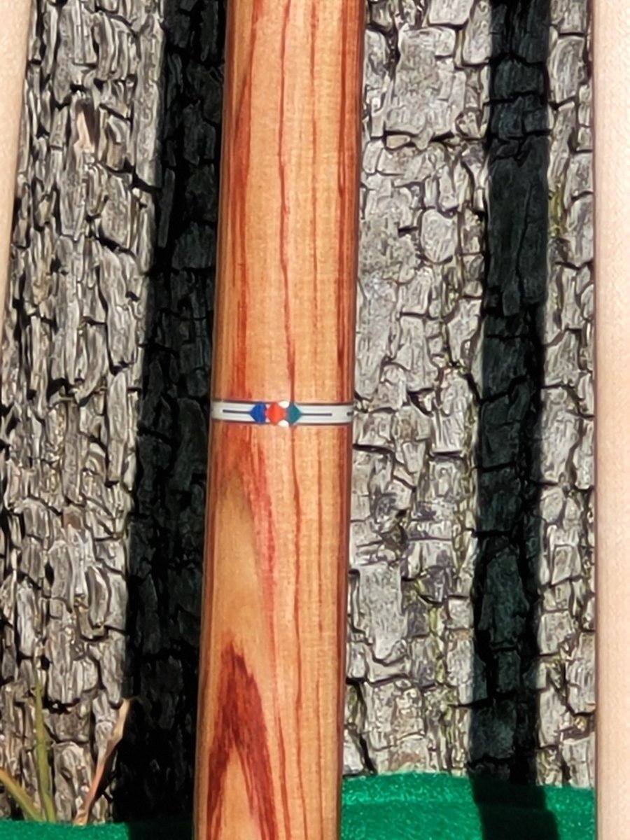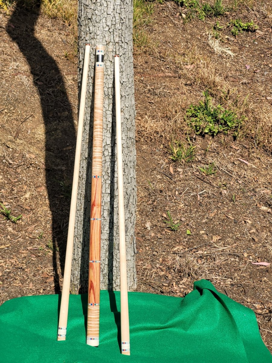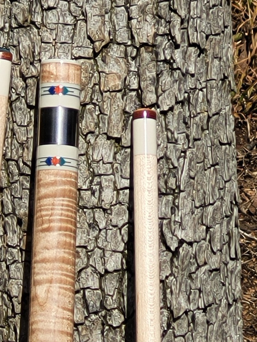 Josh Tredway upscale merry widow. Woods are Artic birch (not maple) and Tulipwood. Unique rings at all positions with overlapping colored diamonds. Segmented handle with same rings. Arctic birch is very chatoyant but pictures do not really pick it up. Joint is unique and is a custom milled 3/8x10 titanium compression fit joint. Super solid and gives the cue an awesome and unique feel and hit. Maybe my favorite feel of any cue. Only selling because it is too heavy for me and it should be someone's player