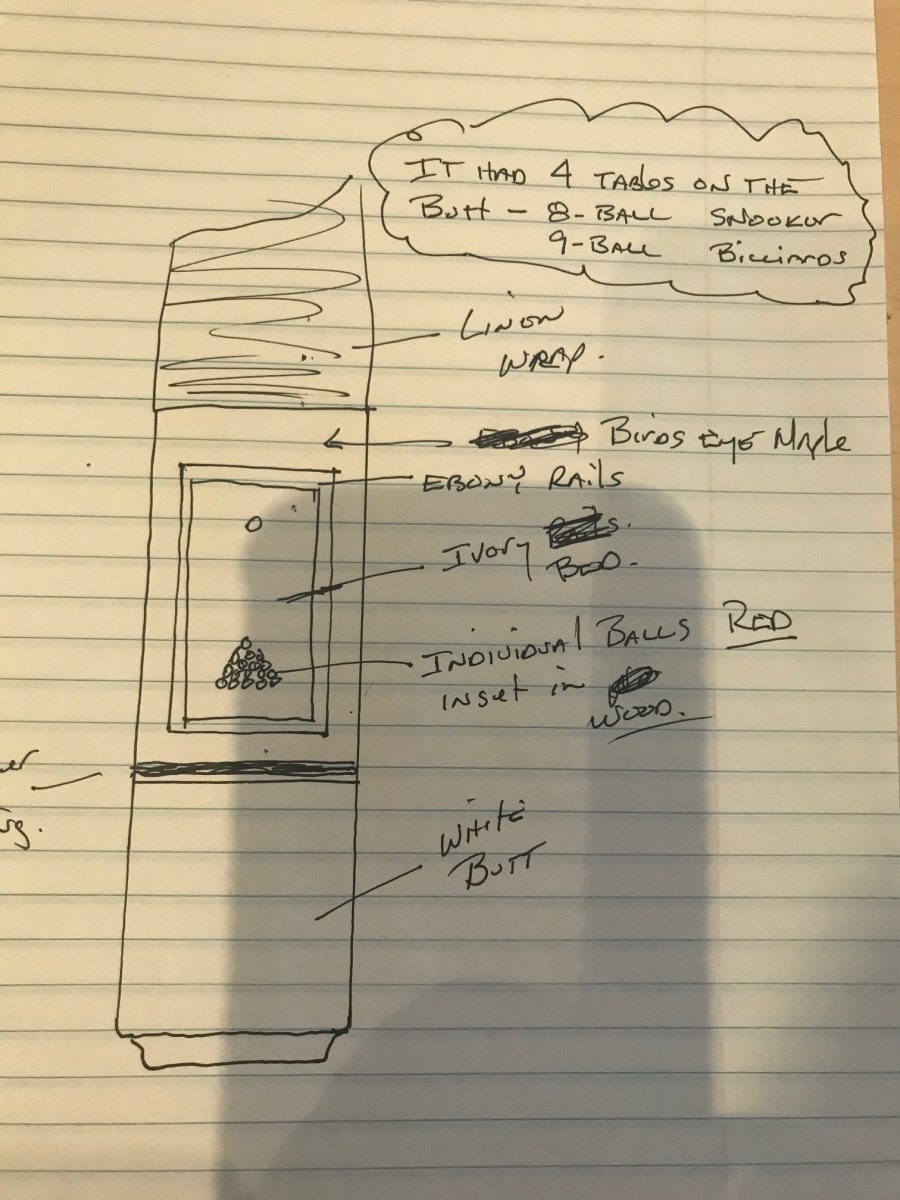 Many years ago i got in a money crunch and I sold my Thomas Wayne cue to a room owner in Mission Viejo. I Cannot remember the room name, but I can describe the cue.