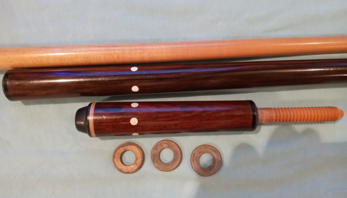 This cue belonged to my father and is now mine. It is a 3 piece stick. It has 3 brass weights that can be removed to adjust the weight of the stick. I have looked all over the stick and butt for any markings and can not find anything. Do to the story my dad told me as to how he came to have the stick, I think it might be a proto type for a stick that was not yet on the market.
