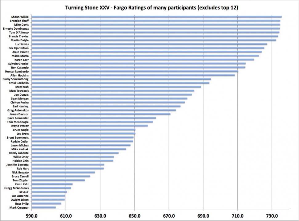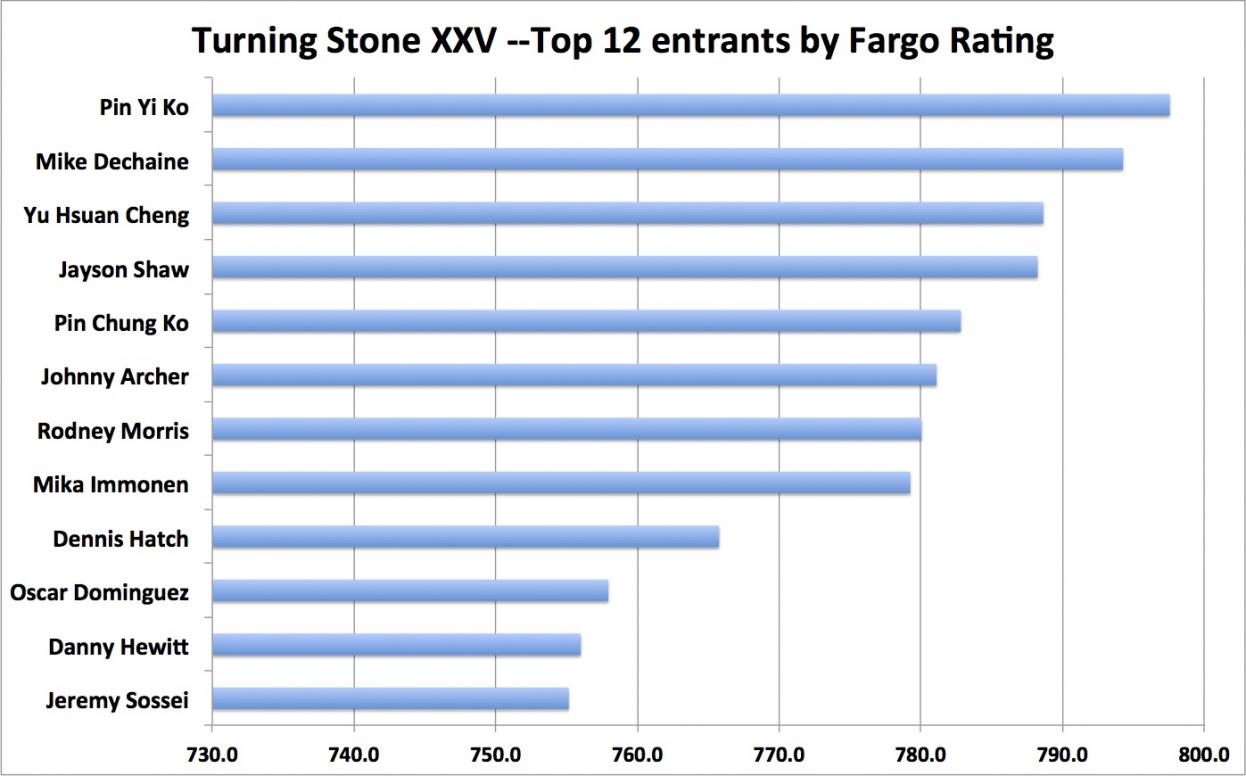 Here are the Fargo Ratings of the top 12 participants in the 25th Turning Stone classic. There is a dropoff of about 20 points below this group.