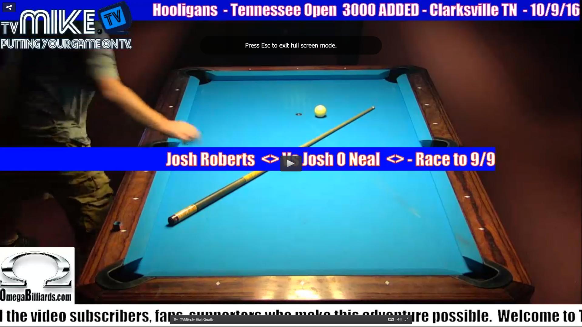 TvMike.tv is LIVE Presented by Omega Billiards - 3000 - Tennesse Open