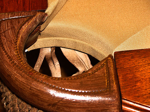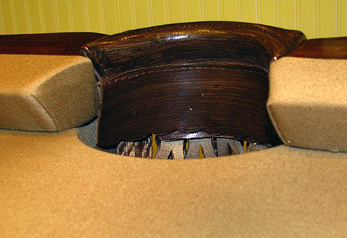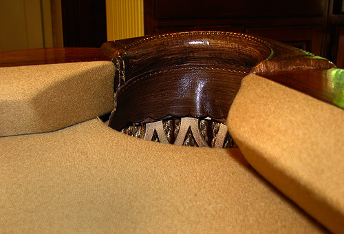 Their cloth work is exceptional. I've never seen cloth pulled this tight with a uniform stretch and absolutely clean pockets. It's not my place to reveal their secrets (they were making a video of their work to send to Simonis), but a combination of gluing and stapling, along with precise placement of the cloth and measurement of the stretch, produced outstanding results.