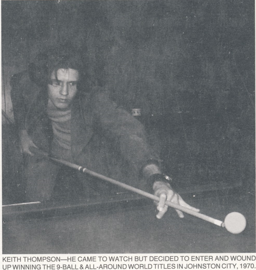 The last time I saw Cole was at Caesars Lake Tahoe around 1976 or so where Buddy Hall won the 9-Ball. At the time I heard that Buddy had recently recovered from a very bad car accident. I had an event program that showed the players' photos with a few stats. Cole's photo had a place holder and underneath it said he was 6 feet tall. Gaffaw! 5'8" tops. He probably told the event promoters not to include his picture. No sense advertising. Hustlers like to keep as low a profile as possible. The misinformation about his height was probably for the same reason. (I'd say Keith was maybe a little taller. It's was a long time ago and I only saw him once.) One of the play-by-play announcers on the Cole - Luat one-pocket match (still available from Accu-Stats?) characterized Cole as having one of those "good ole boy" personalities. And most everybody wanted to be his friend. I would agree. Click on each photo to enlarge and see the caption.