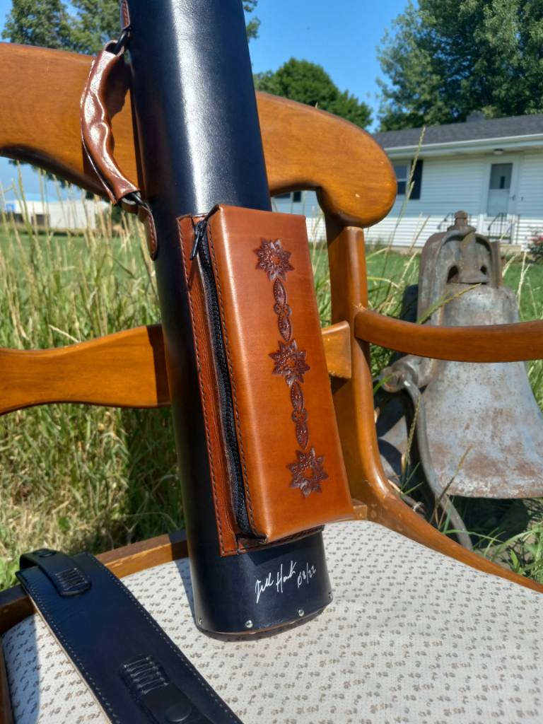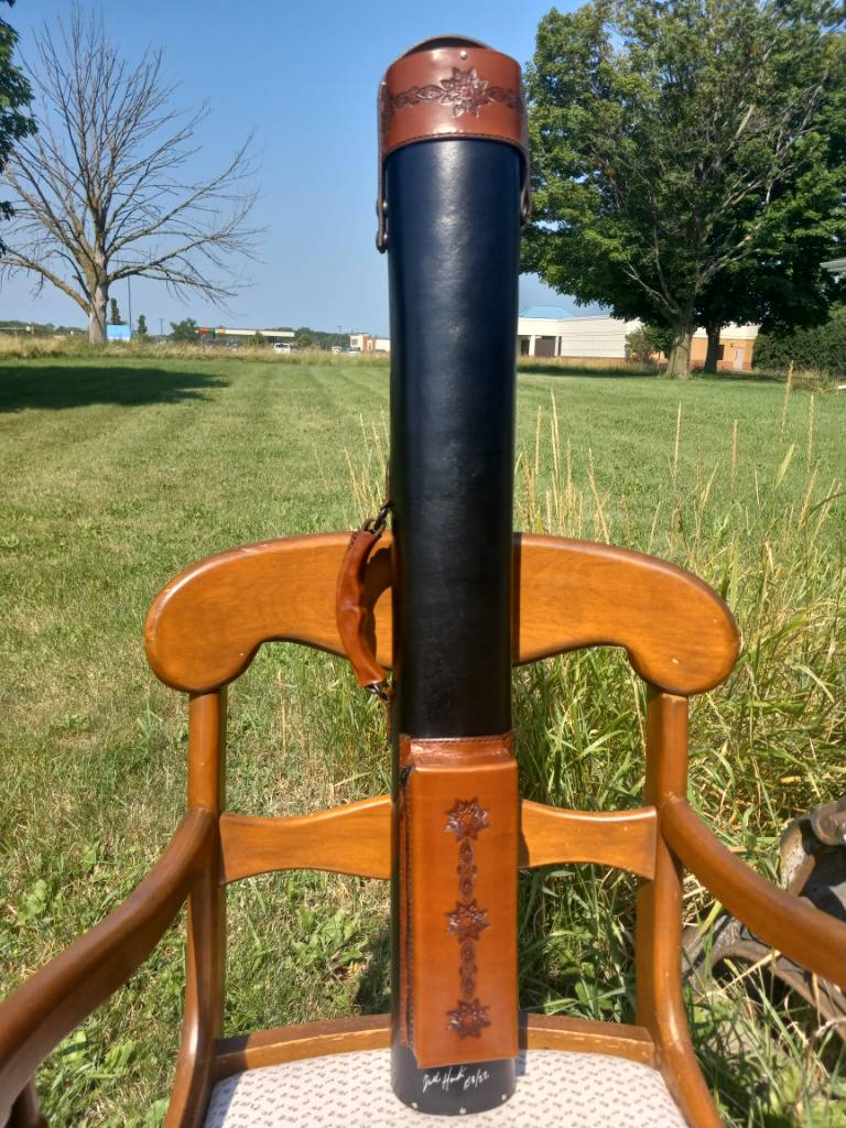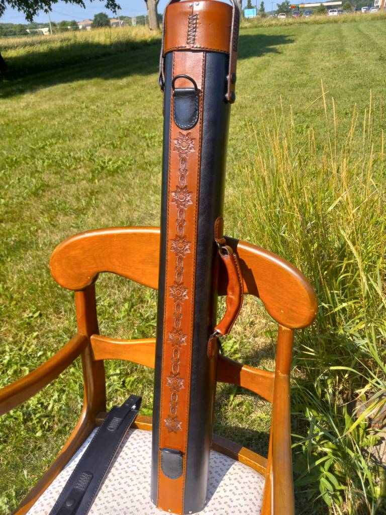 Here is a case, just completed, hand stitched around a 2 x 3 linen lined tube interior. The body is made of heavy weight veg-tan leather, all brown is a premium veg-tan from Spain.