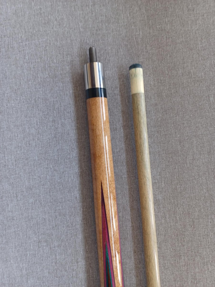 Very nice cue. Nice wood. The points and veneers show some flaws, as well as the face where the pin and collar are set. The work is less than "clean".