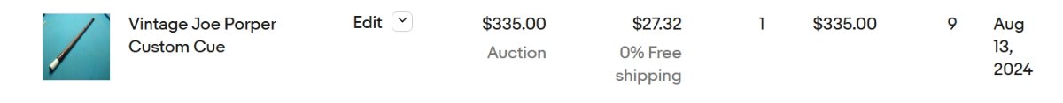 Yeah, I have had a few very nice Porper customs, and sadly, I was not able to get much out of them. Around 4 years ago, I was offered a very nice Porper Tuxedo cue, with all Ebony and Ivory points and inlays for a $1,000, iirc, from a respected dealer on Facebook.