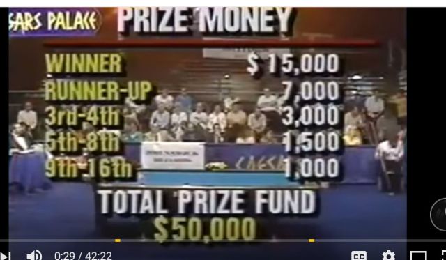 The players should just boycott these events until some sponsors step up...either that or boycott the equipment...play with bar cues or even broom sticks like I plan on doing. This screenshot is from the Brunswick Challenge in 1988...not even the U.S open.