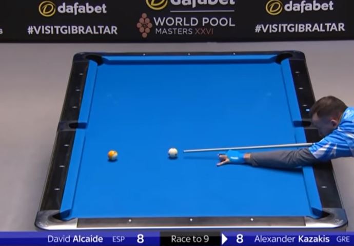 Pocketed the 7 and had to bump the 8. Pocketed the 8 but caught the corner trying to come 2 rail out and get shape on the 9. Checked the shot, then fired in long rail bank on the 9!