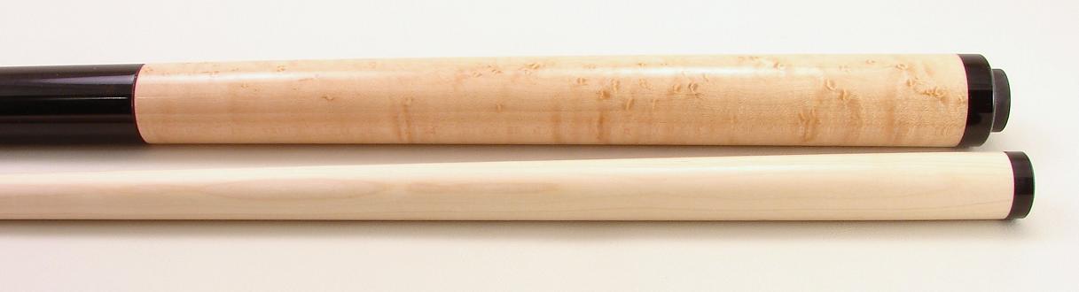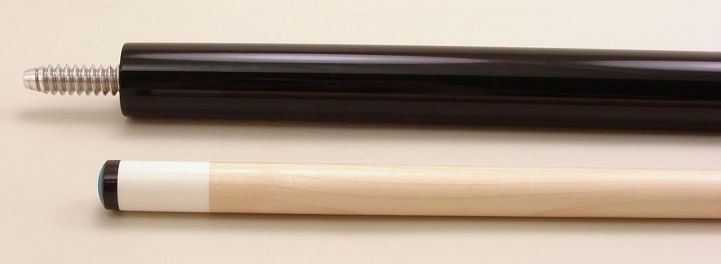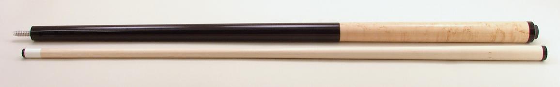 Here is a sweetheart little j/b cue. The black forearm section while looking like ebony is actually purpleheart that I dyed. The rear section is birdseye maple. The cue features dual 3/8-10 pins and is 58" & 18oz. The shaft is 13.25mm, weighs 4.3oz and has an unbreakable ferrule with my canvas-resin tip threaded down into the ferrule. I give a lifetime warranty against cracking and/or breaking on the tip & ferrule. Nothing too fancy but an absolute beast of a j/b cue. This is the top shelf of j/b performance & the buyer will be extremely pleased. Ready for immediate shipping & price includes Priority shipping in the US. Hope everyone had a great Thanksgiving & thank you for looking.