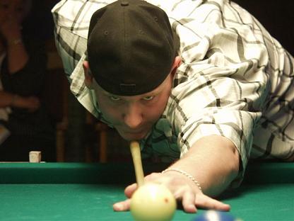 Just got a call from Virginia Young Gun Brandon Shuff who is having a blast on his first trip to Las Vegas. He finished 9th through 12th in the one-pocket tournament, and he's getting ready to play his first match in the Banks tournament. This field is limited to 32 players, and the entry fee was 100 bucks. Shannon Daulton, Ronnie Wiseman, and Gabe Owen are some of the players in this event. Brandon's first match is with a player named Shawn Thompson.