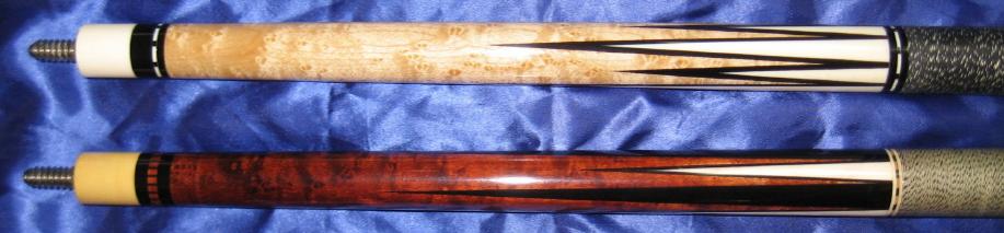 Here are a couple of Verl Horn Cues. Verl loved to load his cues with Ivory and always used sharp points.