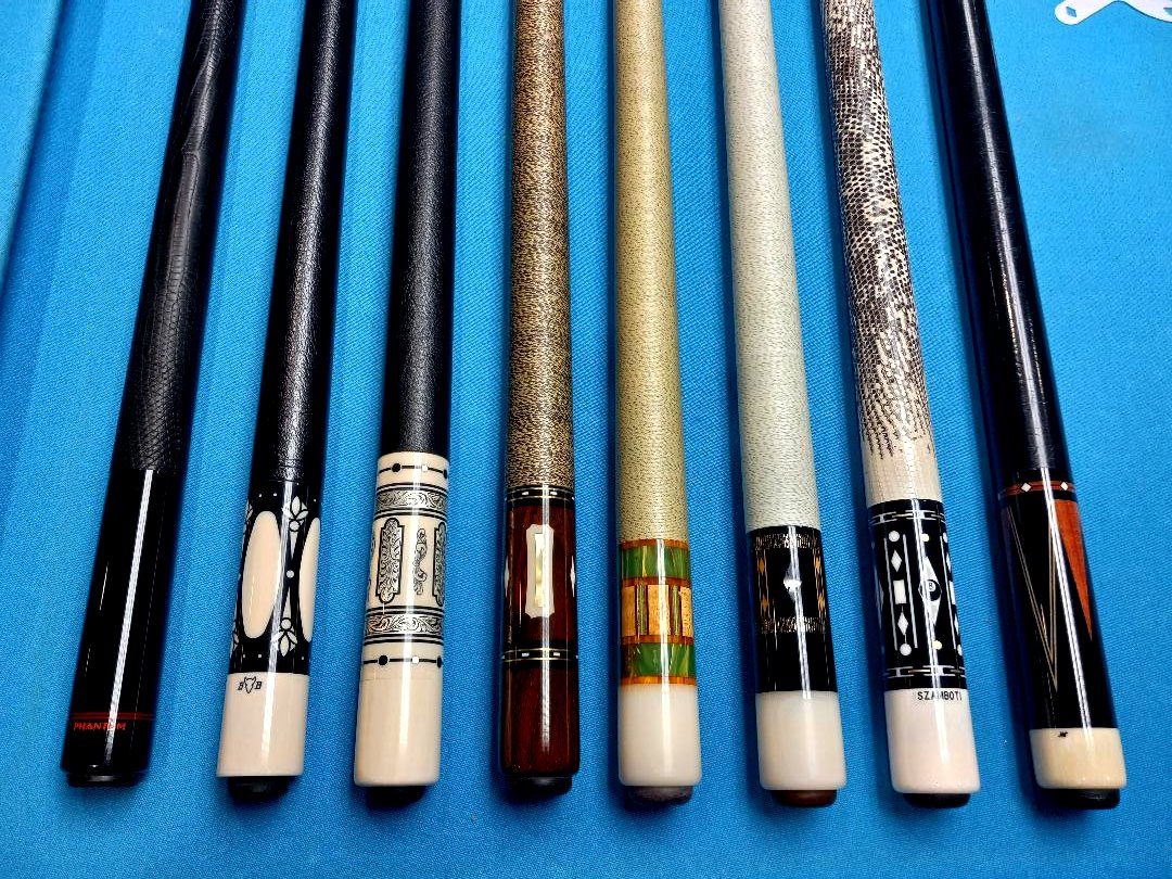 Tim Scruggs phantom, old logo Black Boar, Richard Black ivory and silver Crown, Tim Scruggs cocobolo with ivory and gold lip Pearl inlays, late 50s early 60s green and gold acrylic balabushka with Titleist blank, Balabushka with Spain blank, railroad tracks and glitter bands, an ebony, Ivory and gold 8 point Barry and an ebony and pink ivory Josswest with ivory joint.DITTO![]()