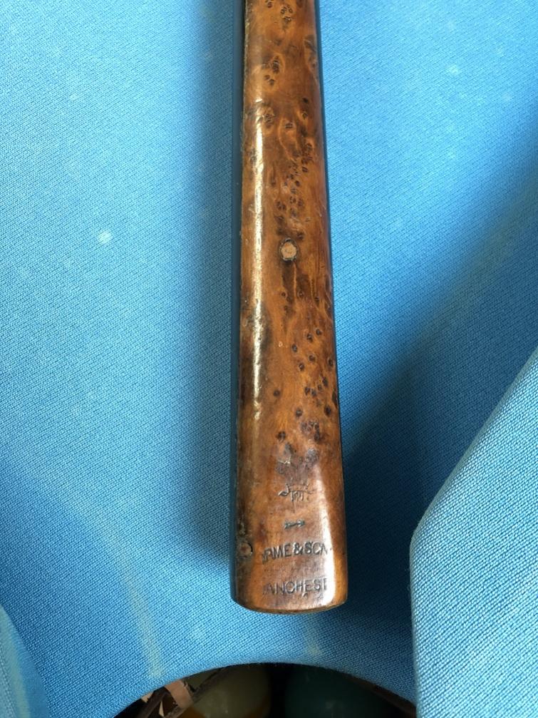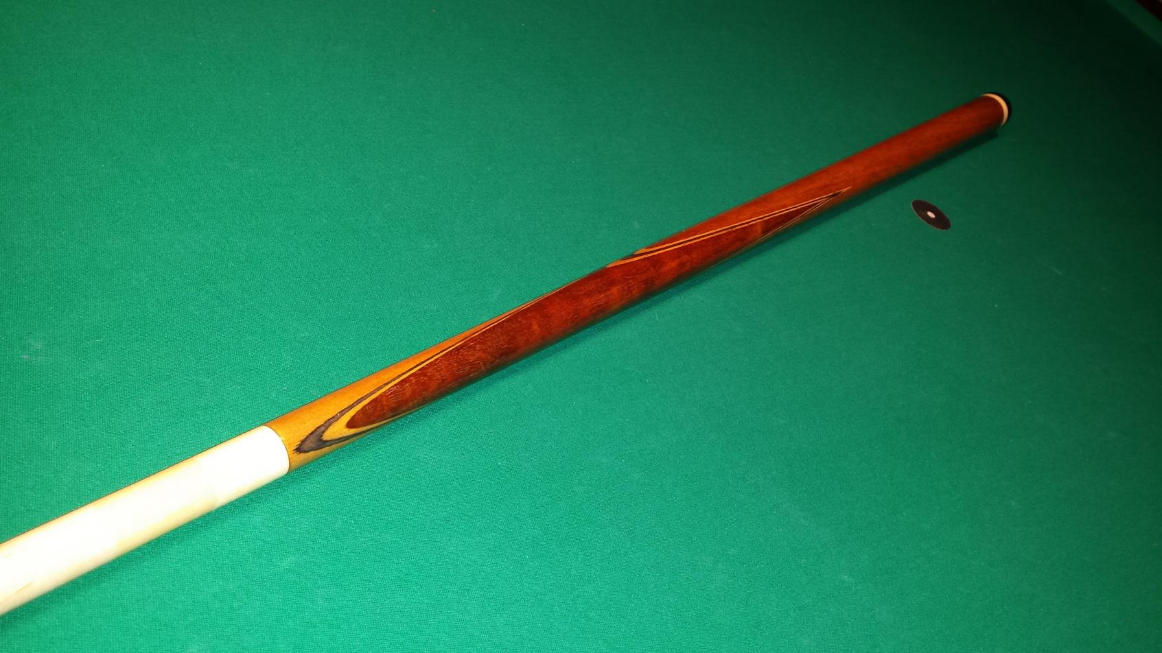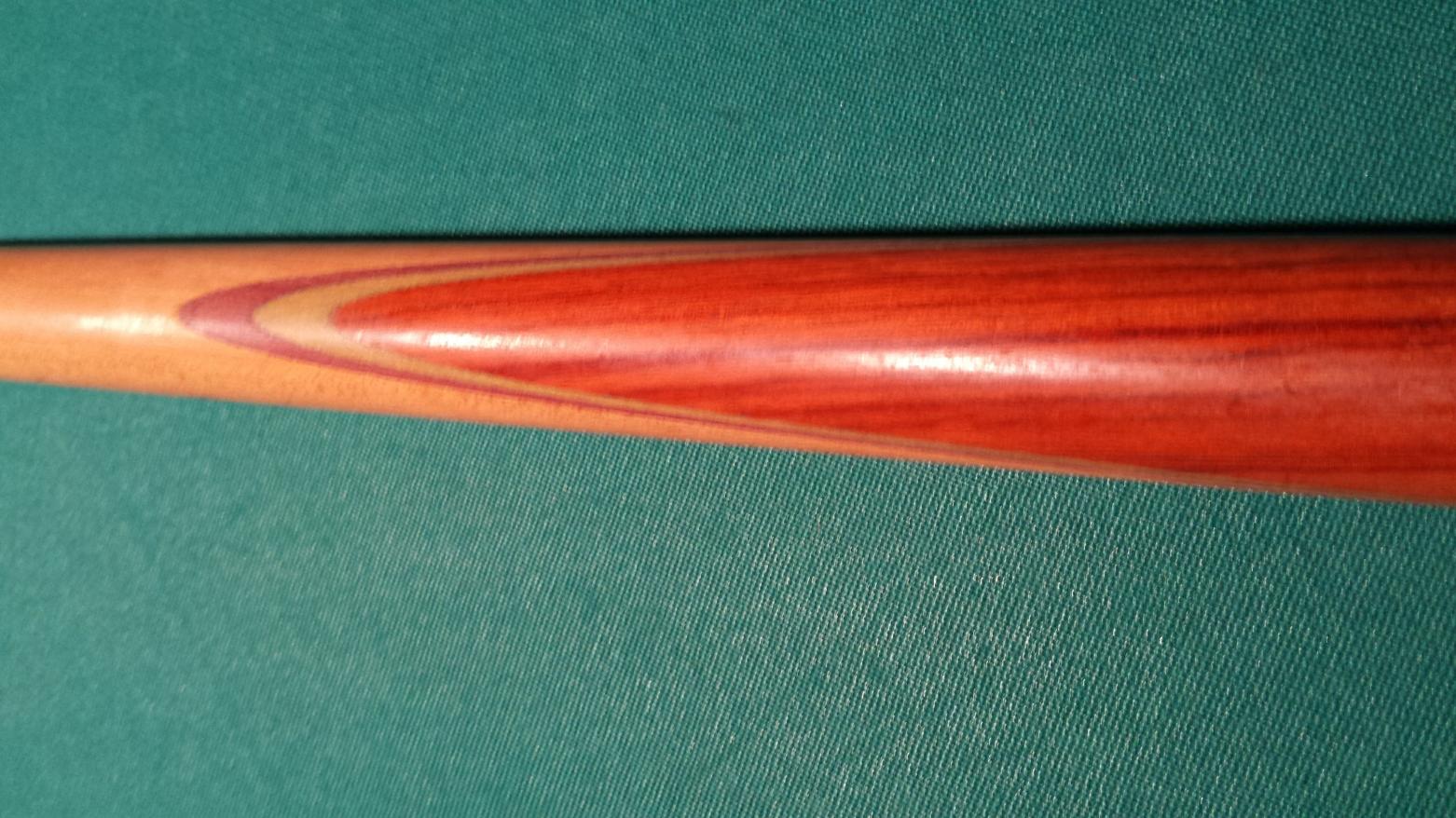 My latest is a Walnut into Birdseye butterfly joint cue. Its not the most colorful as far as veneers go but the walnut and BEM make up for it, Birdseye maple all the way to the black ferrule!