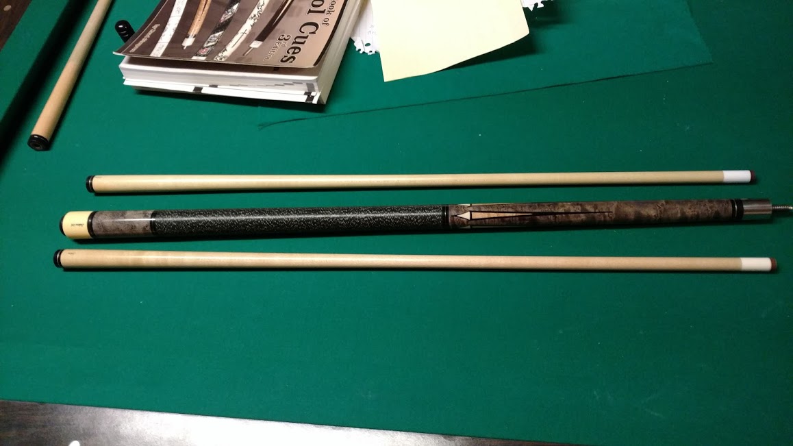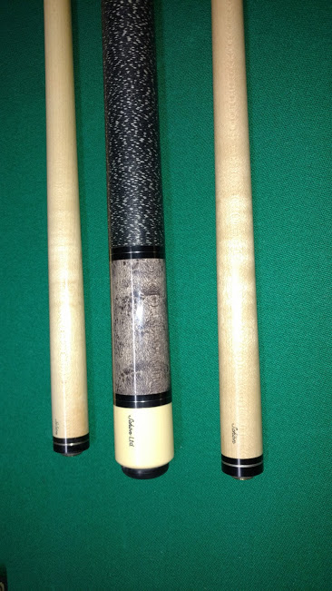 Vintage Schon Limited Edition Cue BEM grey stained with ebony outline and real ivory inlays in the forearm, can either have 2 shafts for $625 or one for $525 shipped with paypal, I was told at the shop the cue was made in the early 1990's, cue also comes with custom joint protectors, cue rolls good with the new shaft has a slight taper with the original shaft but nothing that would affect play