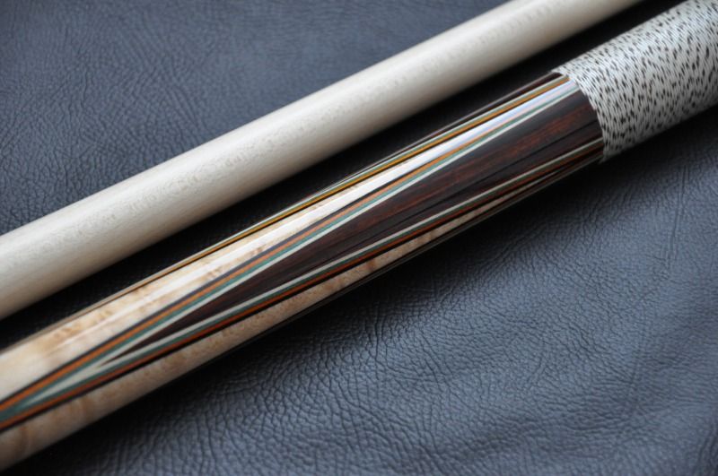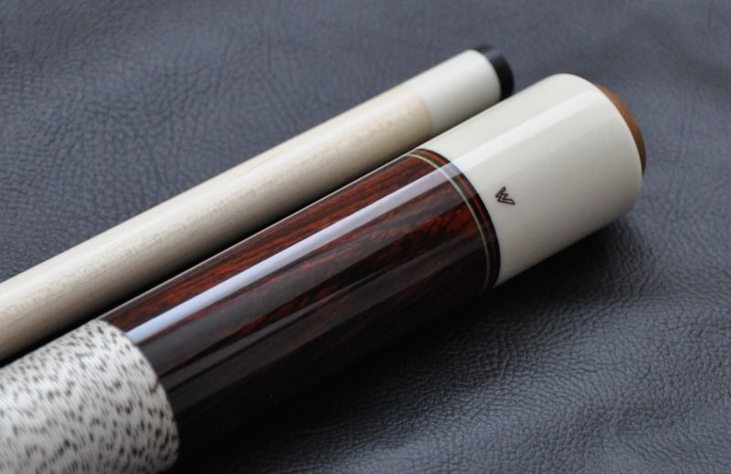 Alright, last Kenny Murrell for the night. The wood in this cue is absolutely awesome and my photos really do not show how red and fiery it is. It almost looks like Cocobolo.