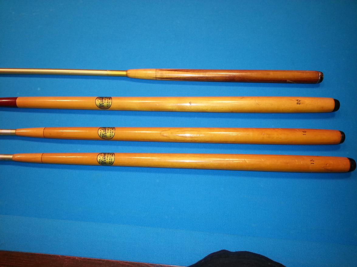 Just posting this to see if there is any interest out there for four Waldo house cues. Only one of them is full length. I have not come across any other Waldo house cues. I am asking $200.00 for all four. Thanks.