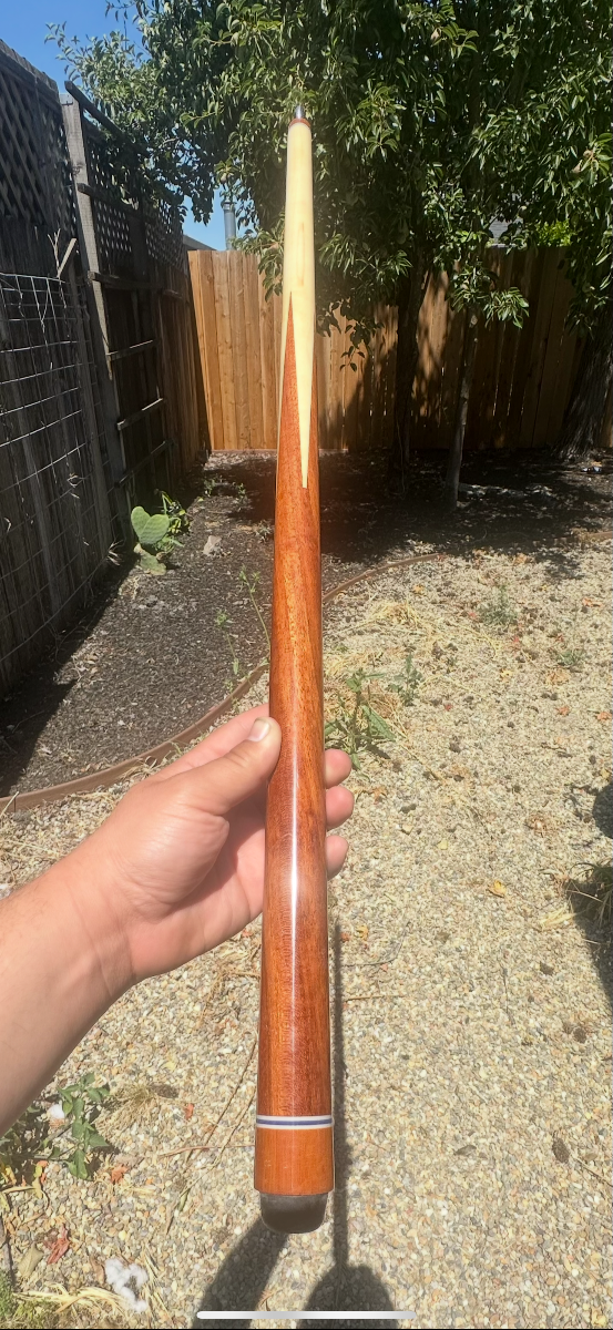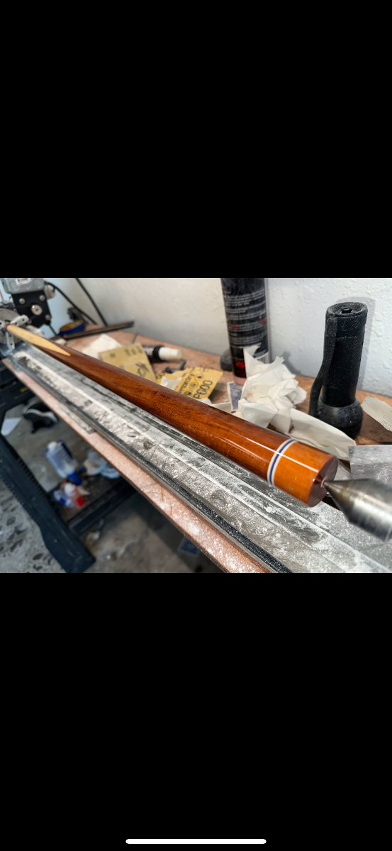 Think outside of the box. Most full length cues you are only cutting the save the butt or on rare occasion the shaft.I have a metal cutting band saw that can drop down and cut a 57 inch cue in half. But cutting a one piece cue in the middle on a normal band saw does not compute to me. I cut 30 inch shafts in half on my 16 inch band saw to make coring dowels, but not sure how to reach that middle point on a wood cutting band saw like most cuemakers own.