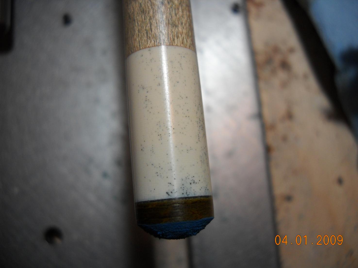 I often tell people when I see this that if they want the spots out then prepare to have a new ferrule installed, because sometimes they come out with minimal sanding, but other times you can sand the ferrule away trying to get them out, and replacing the ferrule may be the option left. When I install a ferrule type that I know to be porous, then I make sure to seal It very well right out of the gate to try and help prevent this from happening. or to at least make It easier to clean up later on.