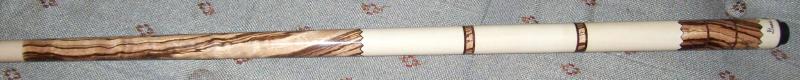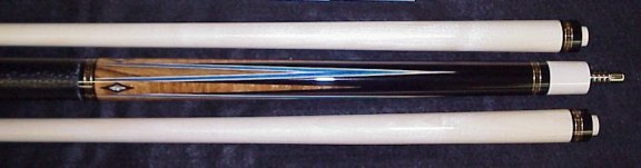 Right now..Keith Josey. One of his "return to pantograph" cues. 4 razor sharp veneered points. Linen wrap. Original shafts with talisman tips...only one shaft used, so far. Someday I'll have to sit down & figure out how to use the digital camera some friends gave me...but I'm computer illiterate, so probably couldn't figure out how to post the pic once I took it.