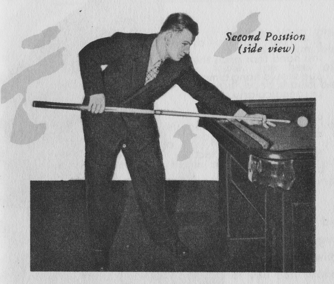 This is exactly as I remember it as well - I almost never saw anyone low on the cue in the 60s - Seems like the 80s advent of the 9 ball popularity brought in a new wave of low on the cue pool stances - Mike Zuglan taught me low on the cue as he liked to have his eyes on the same plane as the aiming point on the balls with less of a sight angle from eyes to OB contact point.Back in the old days when straight pool was king and most of the game was played 1/2 table it's easier to see angles and the clearance between balls by standing more upright.