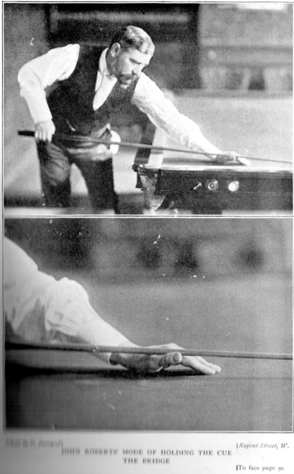 Here is John Roberts, Jr. from 1902. Like Kentfield, his game was English billiards, which doesn't require as much accurate pocketing as snooker.