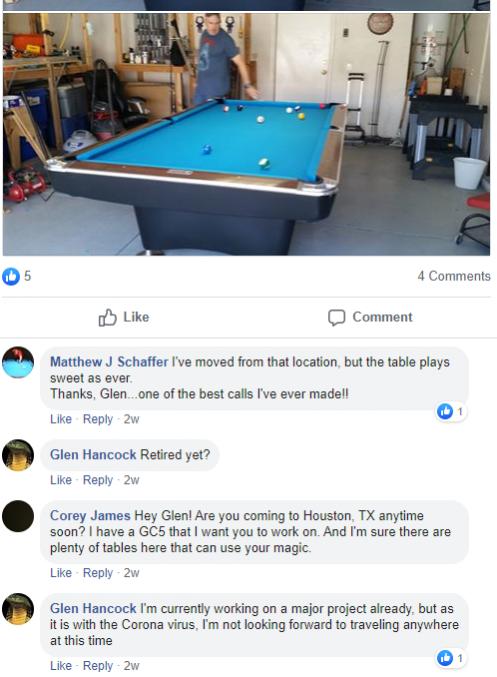 Man i knowits probably already been said over and over,but it really makes me feel good when someone (Jerimy Chambers) does something like this for someone. What a fantastic gesture on his part,and the worklooks perfect to me....I KNOW for a fact(at least in my life) that Karma is REAL and UNAVOIDABLE...so i hope Jerimy gets his back by multitudes of work because of this(and I realize that probably wasn’t his objective) but good on you,Jerimy Chambers!! If i was in your vicinity,I wouldn’t even consider letting anyone else touch my table if needing anything done,regardless of price.....God Bless You(i had never even heard of him before this either)