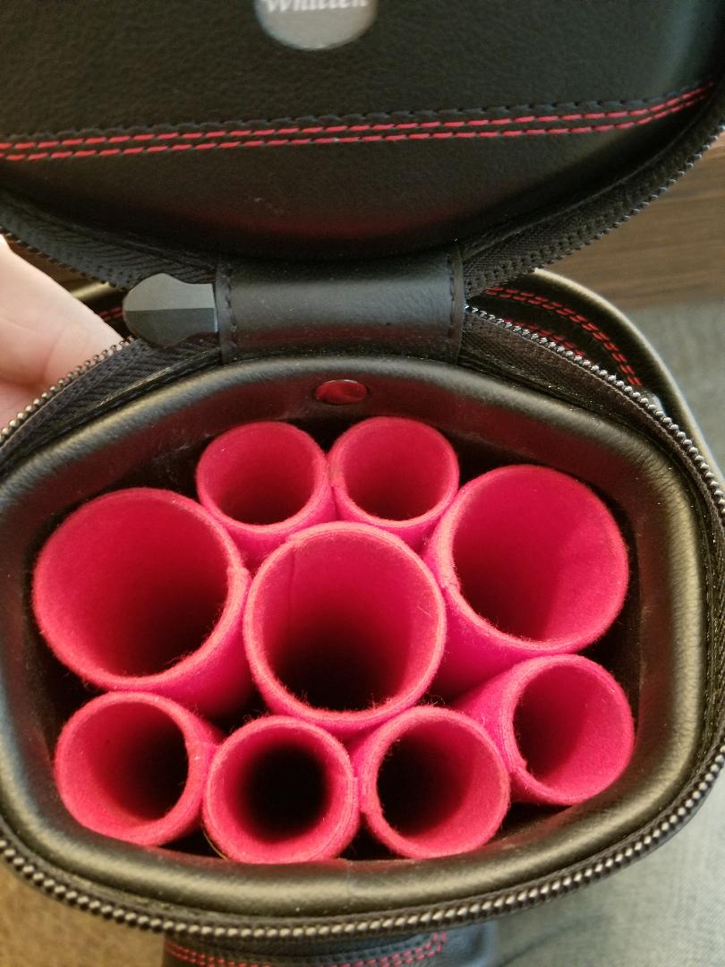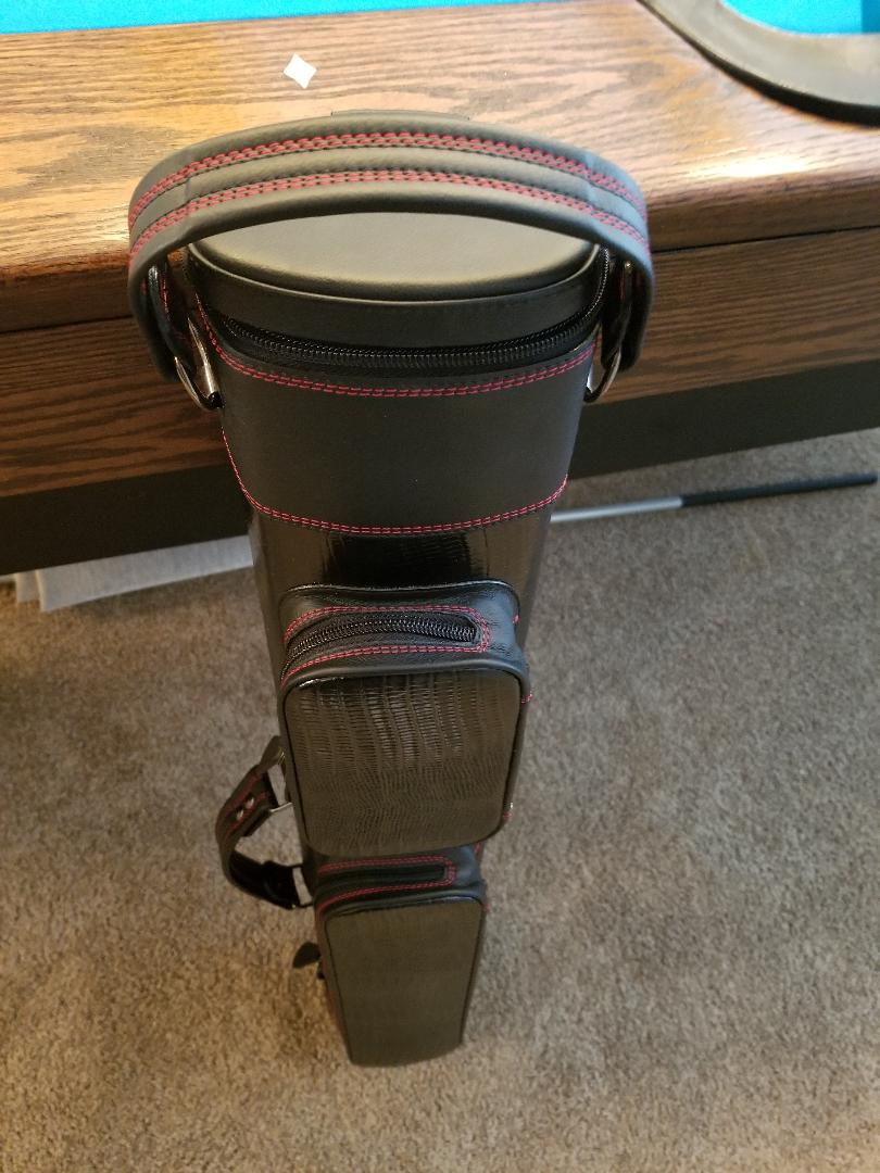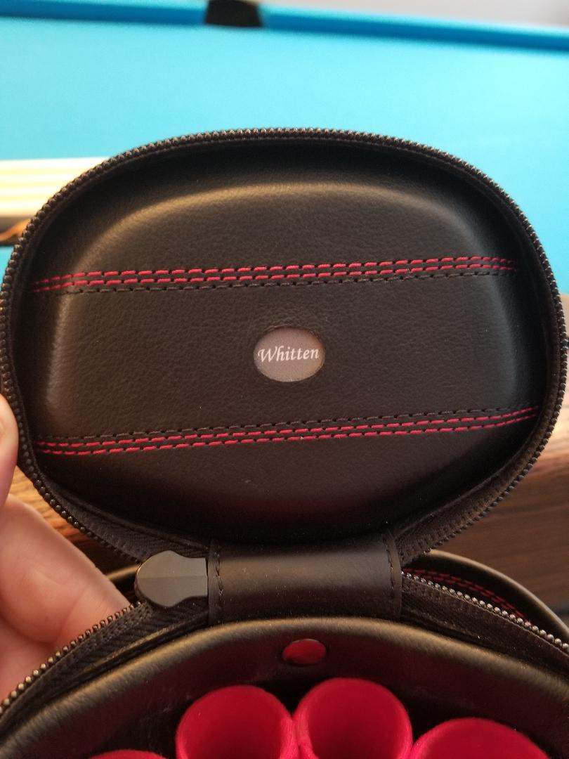 Selling my Whitten 3x5 leather case, excellent shape, only has been used to store my custom cues, case has never been outside my house, I ordered this case new, has 2 pockets, on the small pocket I added zipper compartment on back side for holding chalk, on the large pocket I added zipper compartment for jumper. this is black with triple stitch, red interior. I have more pictures if needed