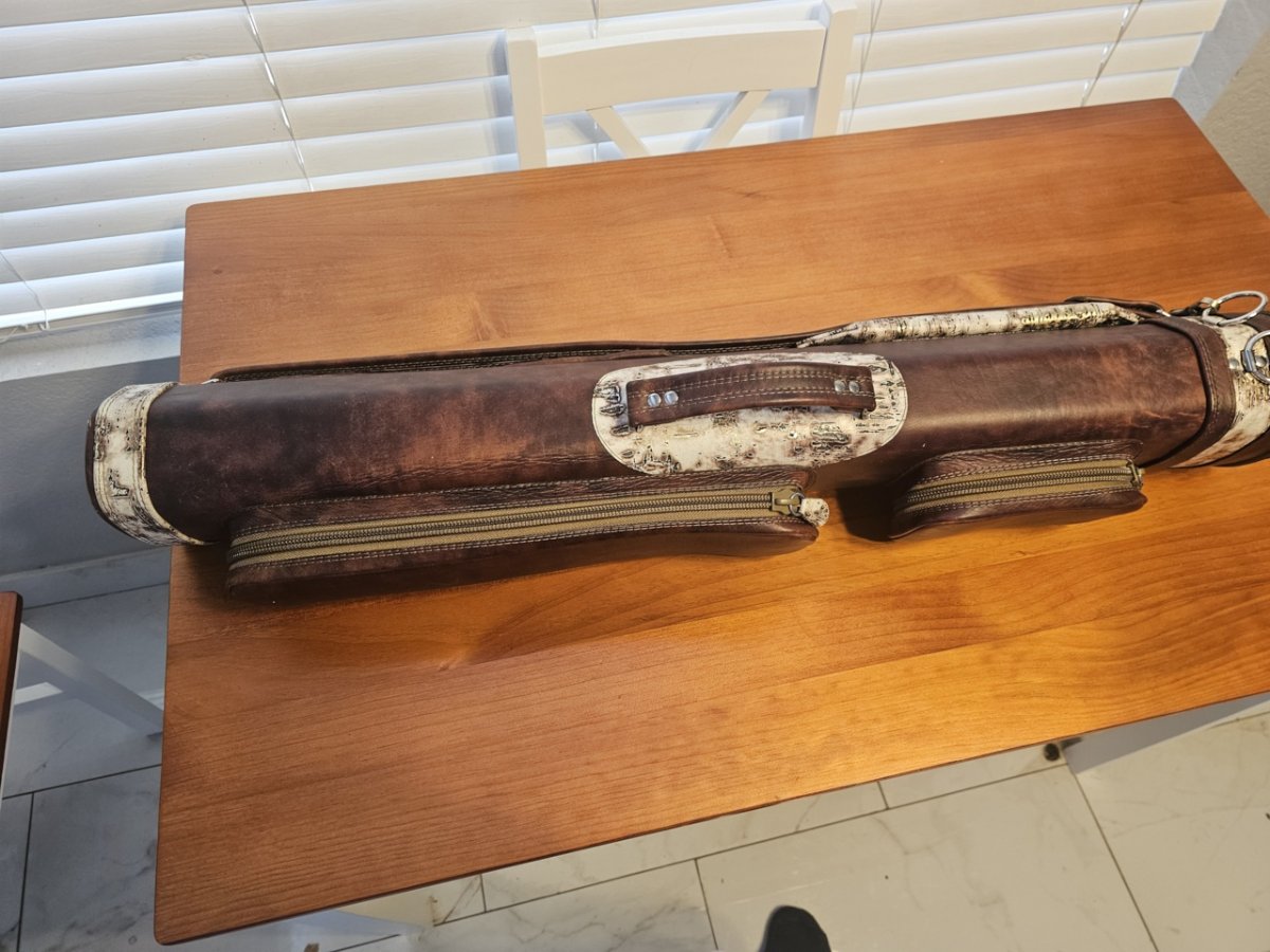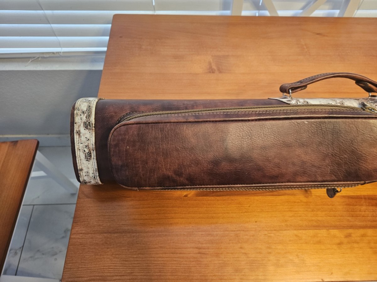 Case is 1/1 Custom Bison and Drift Leather Whitten Case in 9/10 condition. I tried to photograph every minor blemish in the pics. Do not take to pool halls.