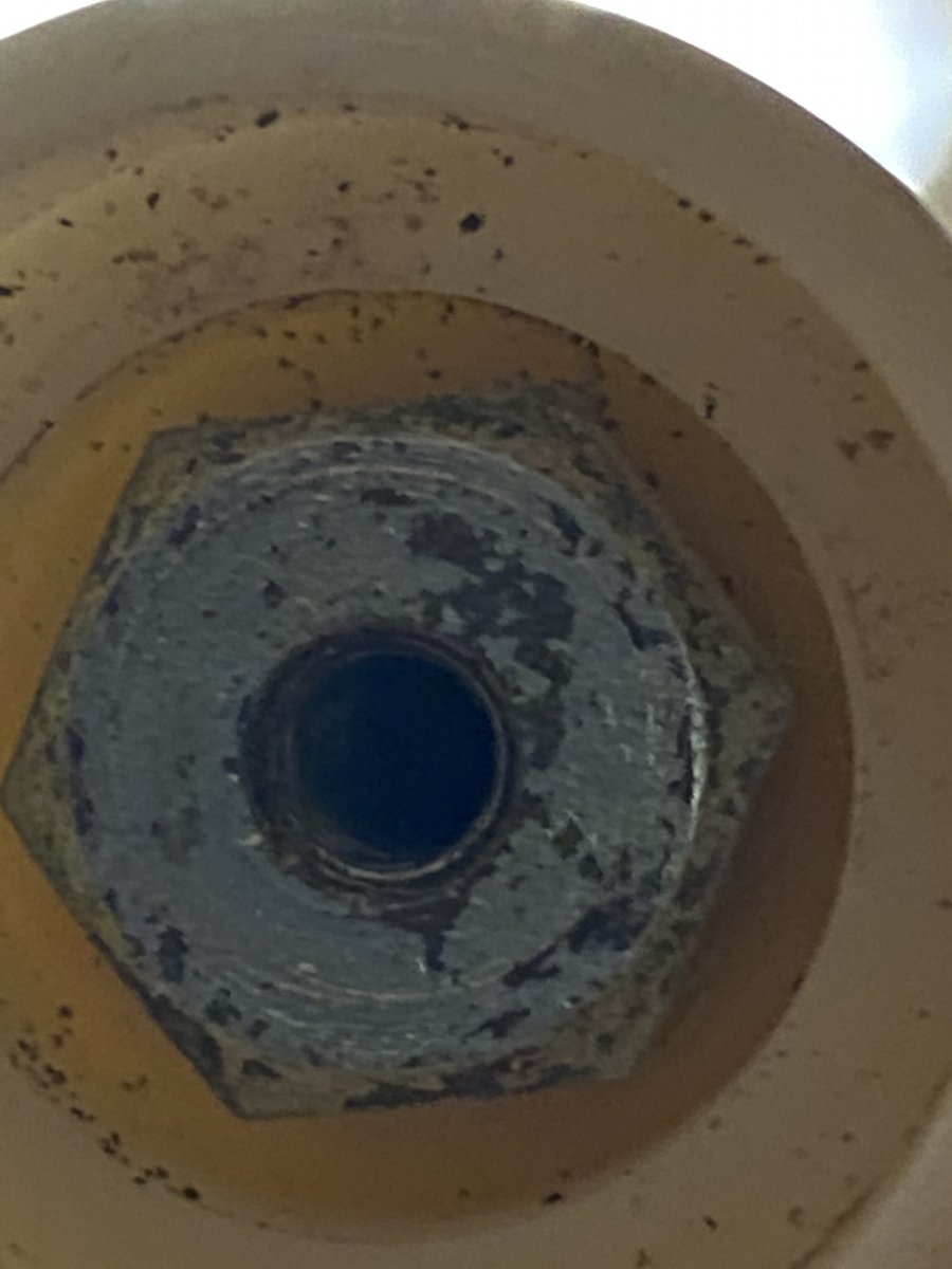 Strange white stuff inside the joint. Not much clearance for a socket on the bolt head also.