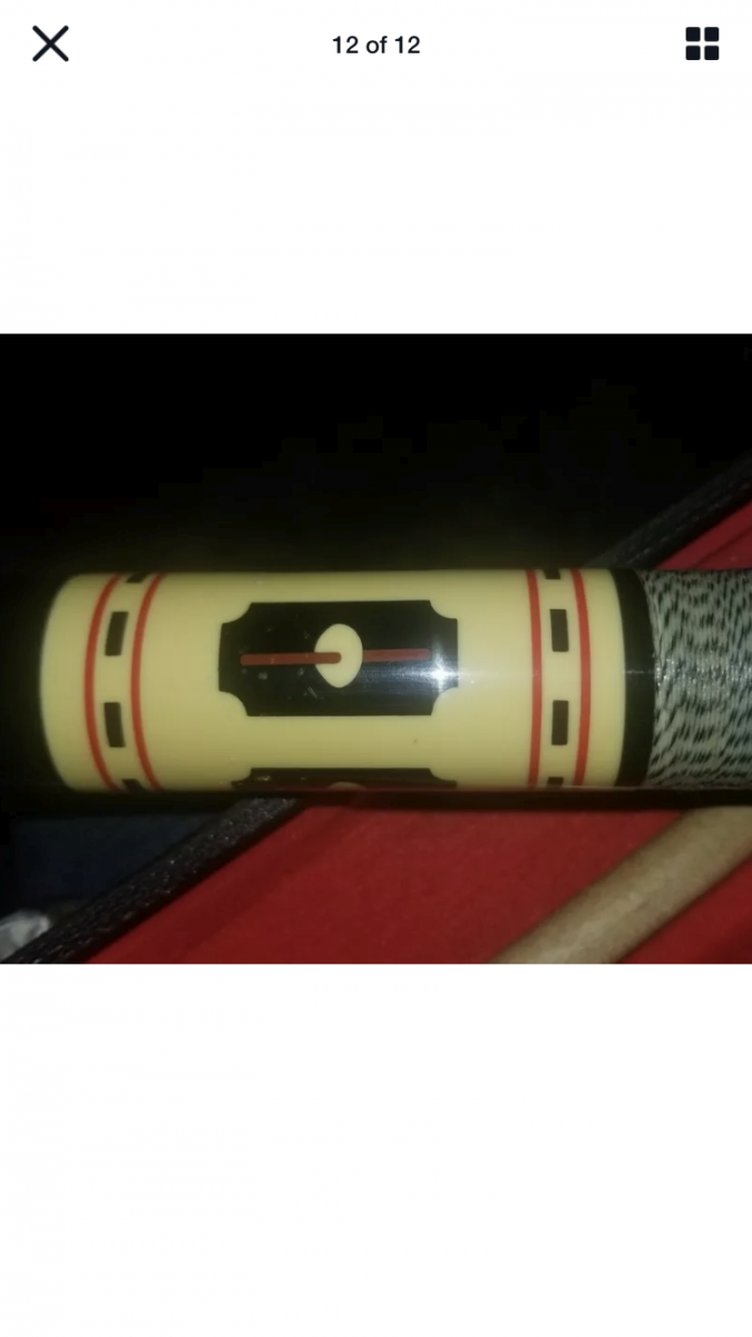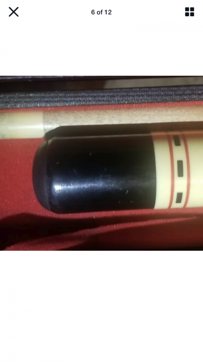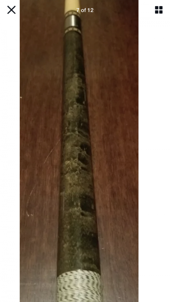 I zoomed in on the ebay listing and it is quite noticeable. It also appears to have a press in bumper. After looking at cues for a number of years, one learns what to look for. My vote is Players. They made Meucci copies for a bit. A 5/16x18 pin removes quite a few quality cue makers. Then look at the pilot. Joss uses a small pilot, Schon uses a phenolic sleeved pilot, Scruggs, I don't recall, though I think he used a wooden sleeve. The buttsleeve style is consistent with a high end JW, butt the there would be a clear distinction between inlay materials. What it does have going for it is a nice forearm.