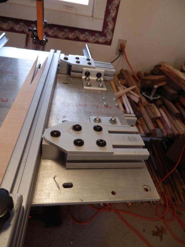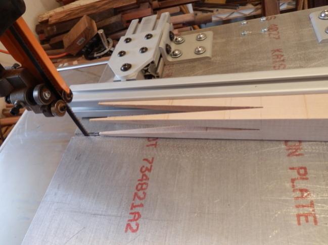 the operation of this design is VERY smooth, as the jig doesn't scrape across the bandsaw table. the jig is raised about a 1/32 of an inch above the surface and is fed on ball bearings.