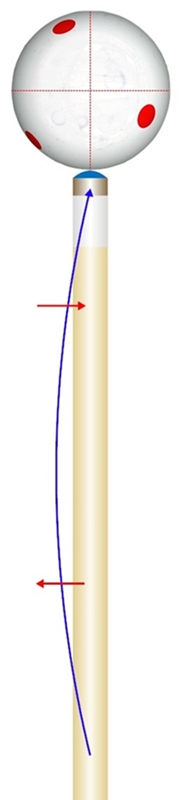 Yet even a very small wrist twist or other sideways movement would cause the edge of the tip to strike center ball without any "s-shape stroke". Set up a center ball shot, now move the stroke hand slightly left, the cue tip goes right, placing the cue tip's left edge where center cue tip was before.
