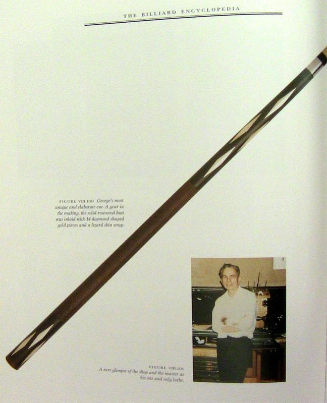Is there a difference then, if both used the same techniques? Well, maybe a little. If you hit some with George's cues in the 70s, they originally had the old French Champion tips on, while Pete's cues come currently with LePros, with red fiber bases. I think they do it to be reminiscent of the old French Champion tip. The old Champion tip was much softer than a current LePro tip, even though the Champion may have been touted as a "hard" tip at the time. It wasn't, believe me. So, to make a short story long, assuming similar height of tip, my memory is that George's cues had a nice solid hit, and it was a bit more compliant than a current Tasc, which has a bit more crisp hit to it. This assumes a 5/16 X 14 shaft with steel joint, with a buttplate bumper for each, which the vast majority of George's cues had.