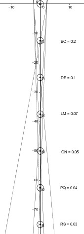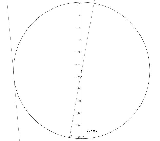 I drew these up in Geogebra to show just how small the range for center cue ball is from straight shots to ultra thin shots from various distances between cue ball and object ball. We have to precisely place our cue tip within these ranges to find center cue ball for every shot from straight to ultra-thin. The closer the clue ball is to the object ball the larger the tip placement range.