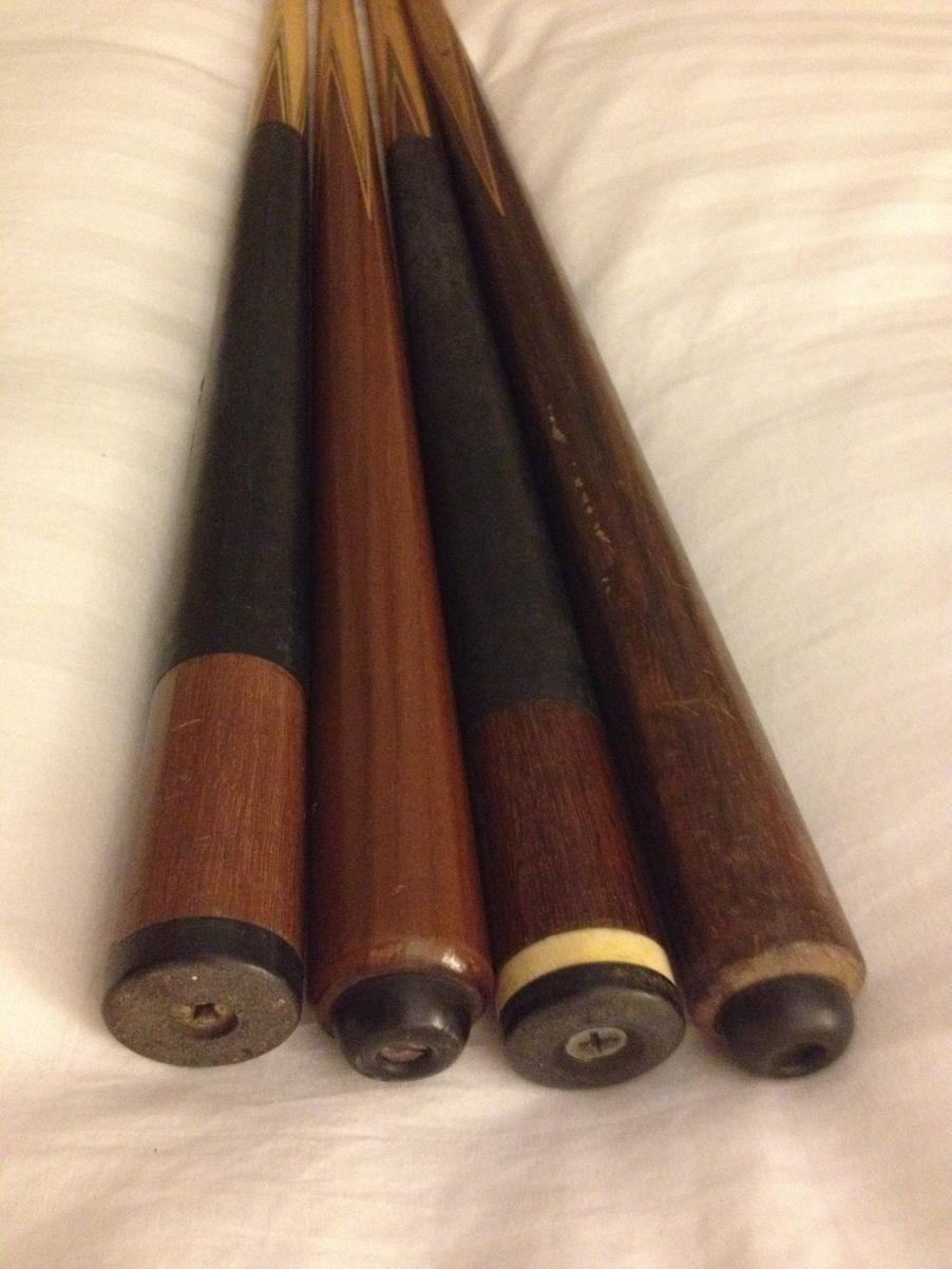 Fellas, I've been collecting these for a few yrs and never was able to tell what types of wood each one of these are.. my guess from left to right - purple heart, oak, ?, ? , oak.