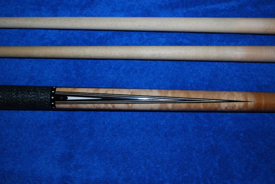 This is a Woodworth cue and has some scratches in the finish around the butt cap. Wood looks to be ebony butt cap, irish linen wrap and BEM. I would have the butt section refinished as yo can feel the butt capp and the collar above it. This cue is made by an amazing cue maker. The price is 550.00 obo and the cue plays great. No trades. Paypal, ship CONUS