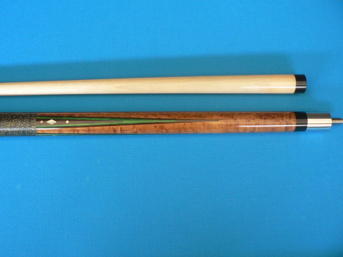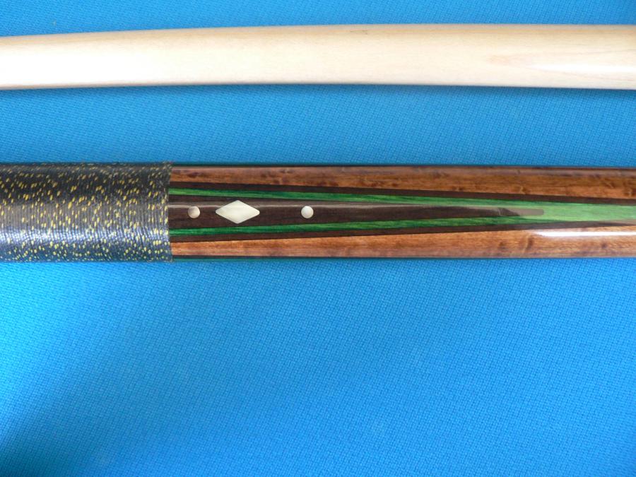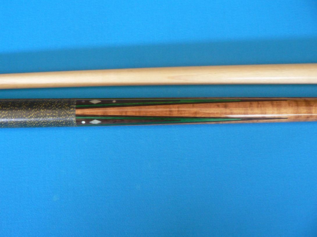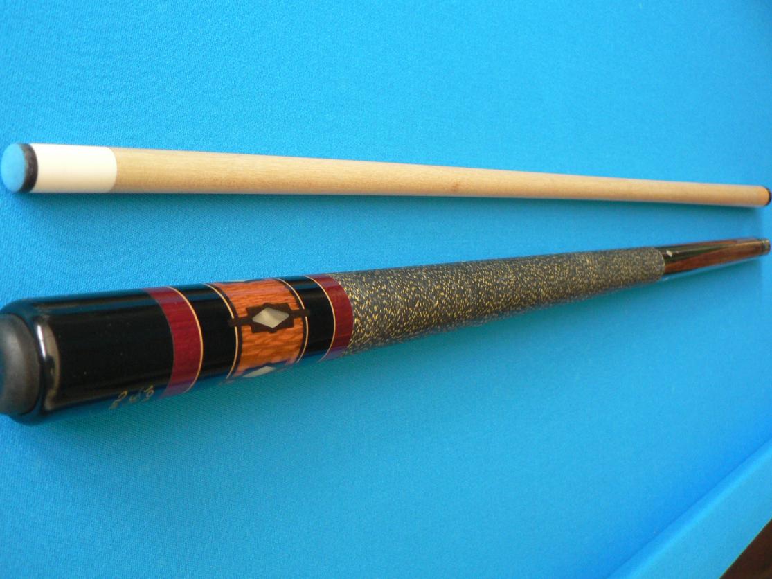 Here are some pics. It's a 4 pointer with stained BEM forearm. I appreciate any help you guys can give me. The cue is dead straight and in good condition. Only a couple of dings on the butt plate, no damage on the forearm. The finish is good and the wrap in good condition with specks well defined.