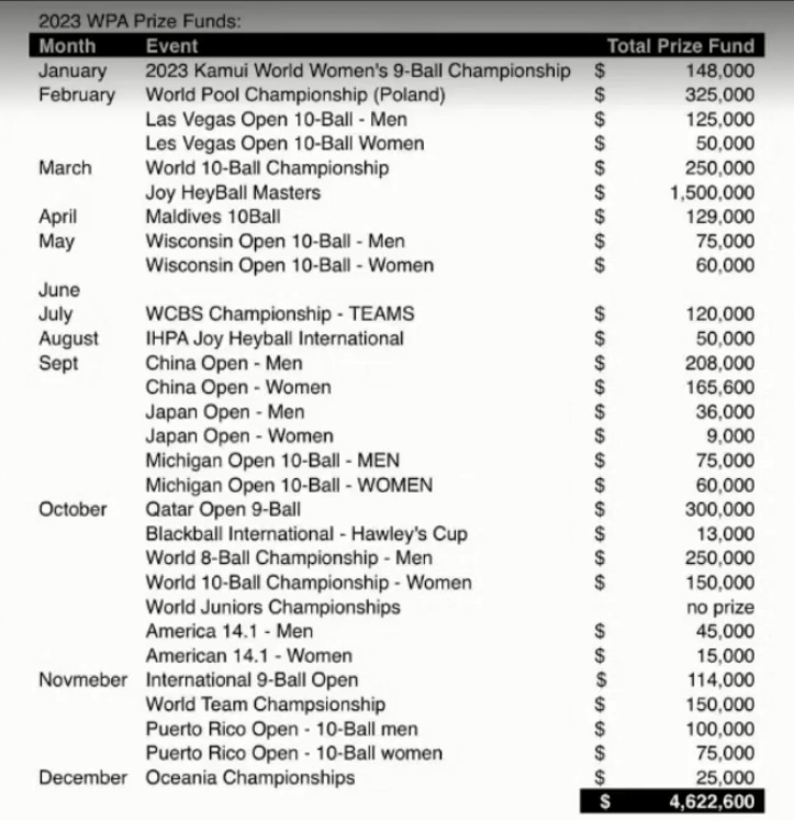 honestly this is a sad list to look at. I really hope all this wpa/mr stuff ends up in a lot of money getting pumped in to lure players and we can see another zero on those dollar amounts for a top 10 player in the not too distant future.Josh Filler is such an interesting case. He gets federation support. He also is going to be a player with a top tier sponsorship package. And he has notable tournament winnings from top finishes. Most of his 2023 tournament money looks like it came from the WPA side of the fence where I would have guessed the other side.