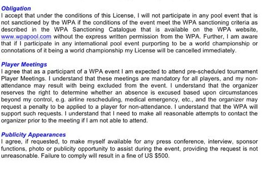 At first I was pretty confused why they would prevent someone from not playing in a WPA sanctioned event based on other posts but then I read the actual document.