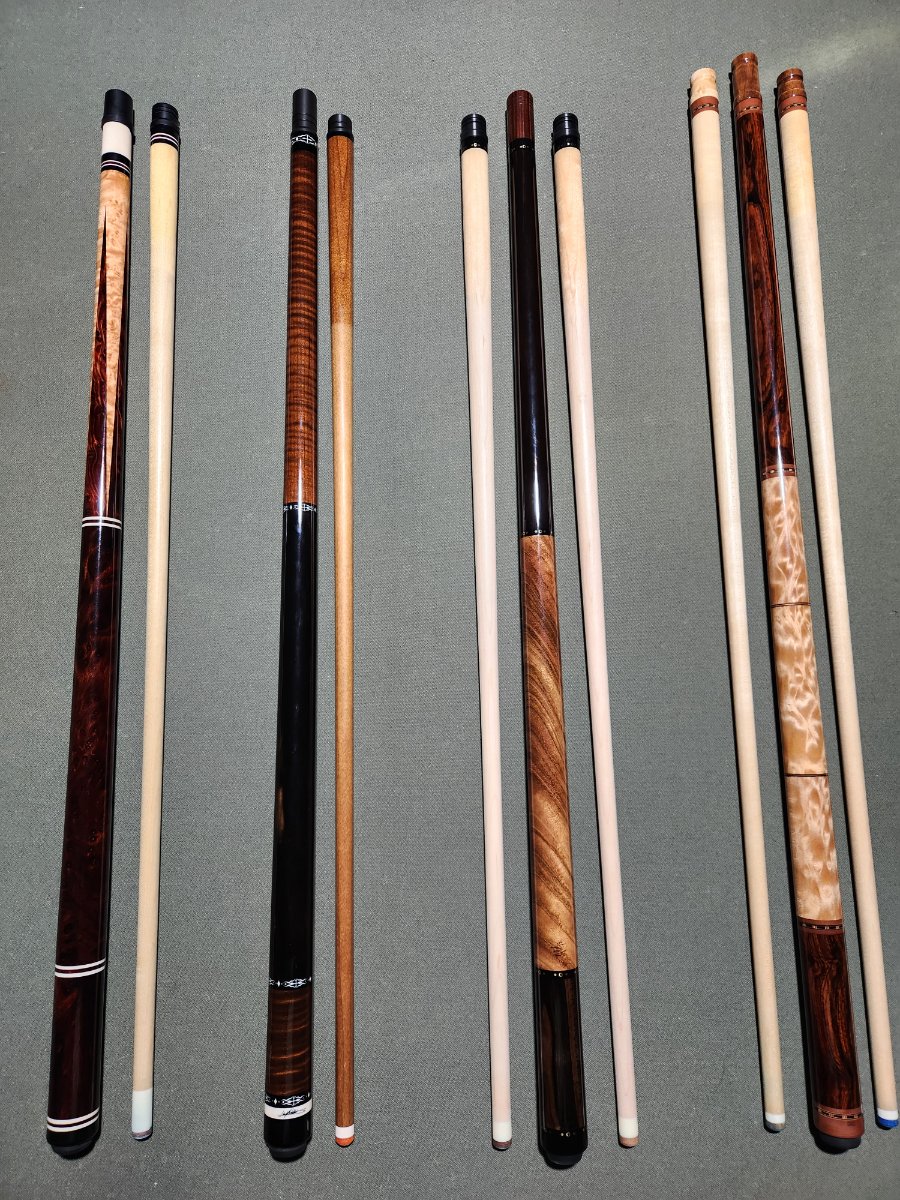 All except the Shelby were purchased via AZB. The Shelby was an SBE cue, but I'm having him build me one with a wrap. Happy to send more pics/videos or even video chat.