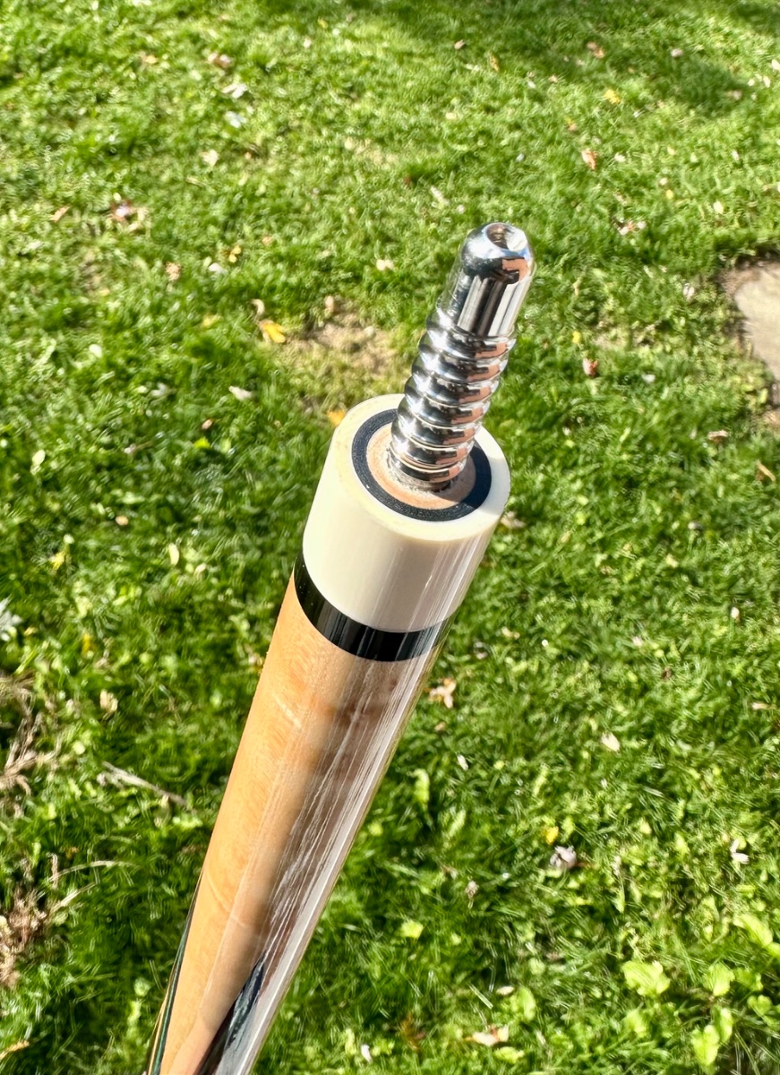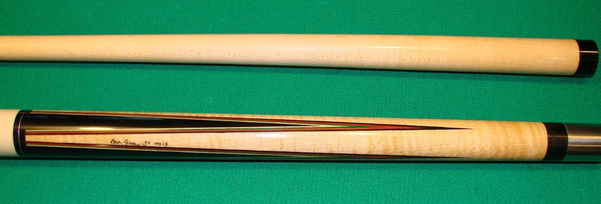 I have a Douglas Moore wrappless listed for 950.00 with 2 shafts.Looking for a wrapless Merry Widow or full splice cue with radial pin under $1000