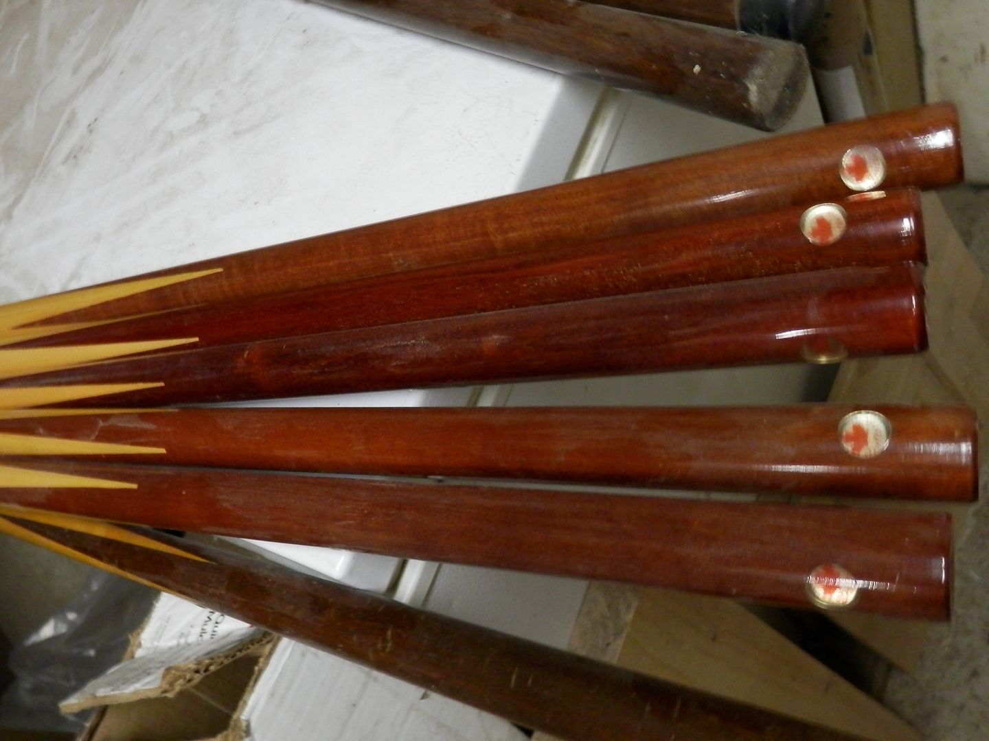 These are old 1 pc. cues . I do not know actual age , all red lable , all straight .